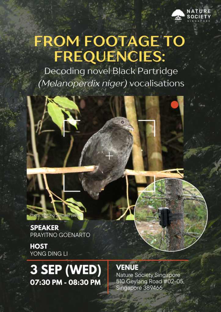 The Black Partridge is one of the least known bird species in Southeast Asia, represented by handful of observations and mostly camera trap images in recent years. Lack of information of its call has made it even harder to detect by researchers working in the lowland forests of the region. The species is largely a specialist bird of peat swamp forests, a habitat that is fast disappearing across the region, and yet can be incredibly hard to access for birdwatchers.